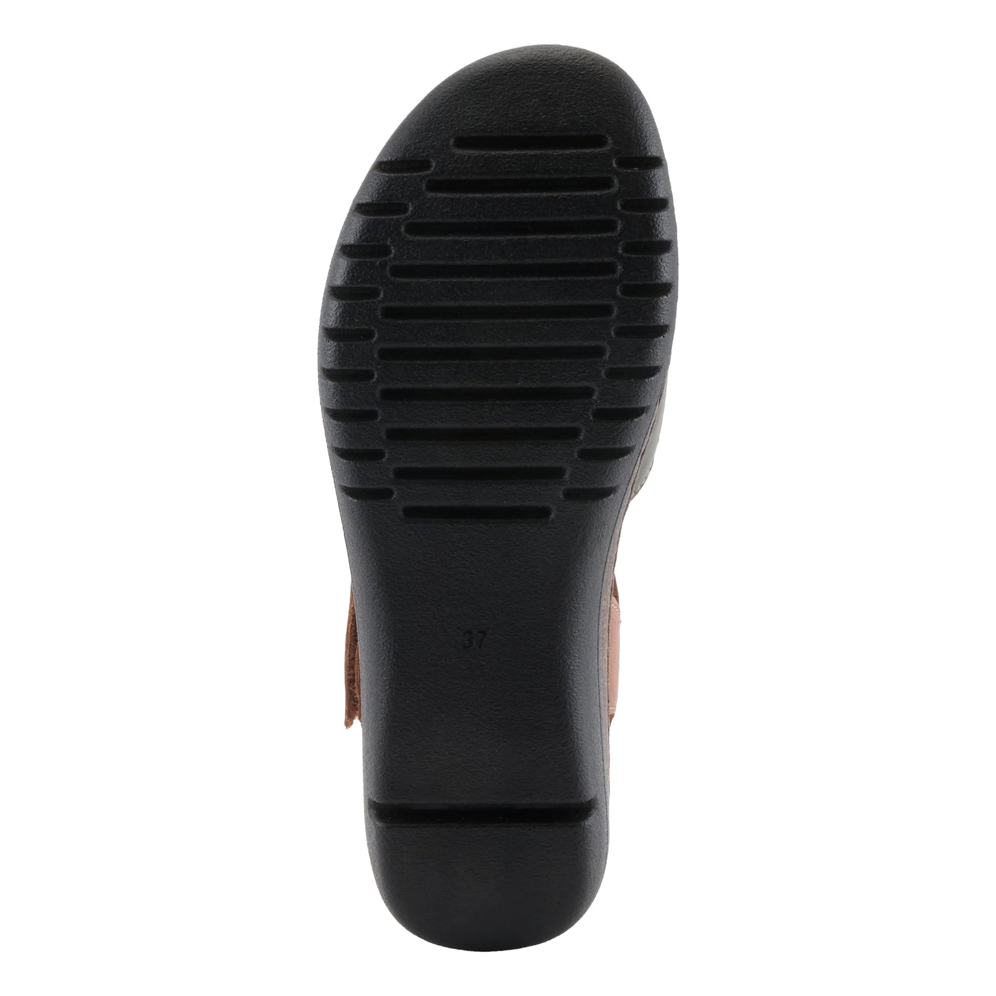 This sandal blends sleek design with practicality for today’s woman on the go. The contemporary laser-cut upper creates a geometric floral-inspired pattern that feels both stylish and breathable, while the clever hook-and-loop ankle strap makes adjustments quick and convenient. The padded leather insole ensures a cushioned feel, and the sturdy wedge provides height with stability. Whether styled with cropped pants, midi skirts, or casual denim, this sandal is perfect for everyday city wear, brunch outings, or stylish travel comfort.