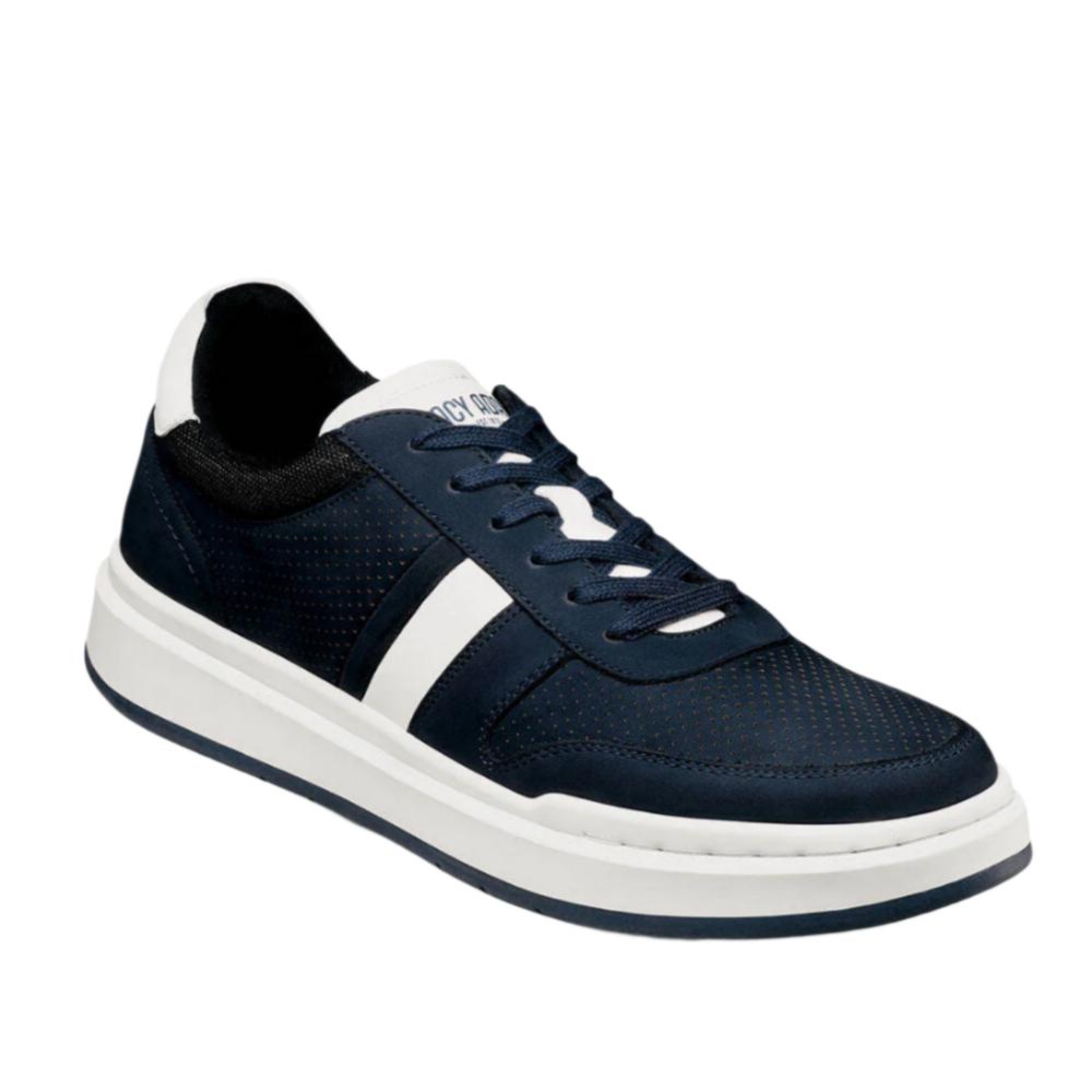 The colorful grid embossed suede upper of the Stacy Adams Currier Moc Toe Lace Up Sneaker is highlighted by a single white stripe and white rubber sole. This modern and versatile sneaker design means that this Currier delivers the style you want every day of the week. Now available at Alamo Shoes in Chicago.