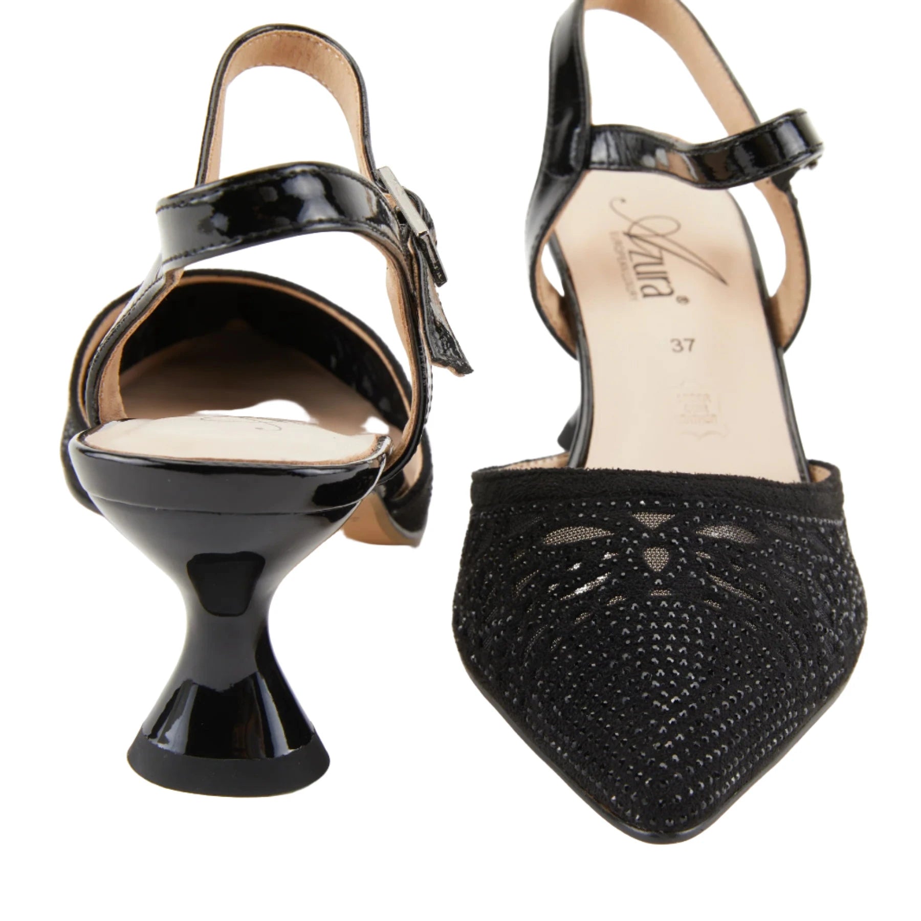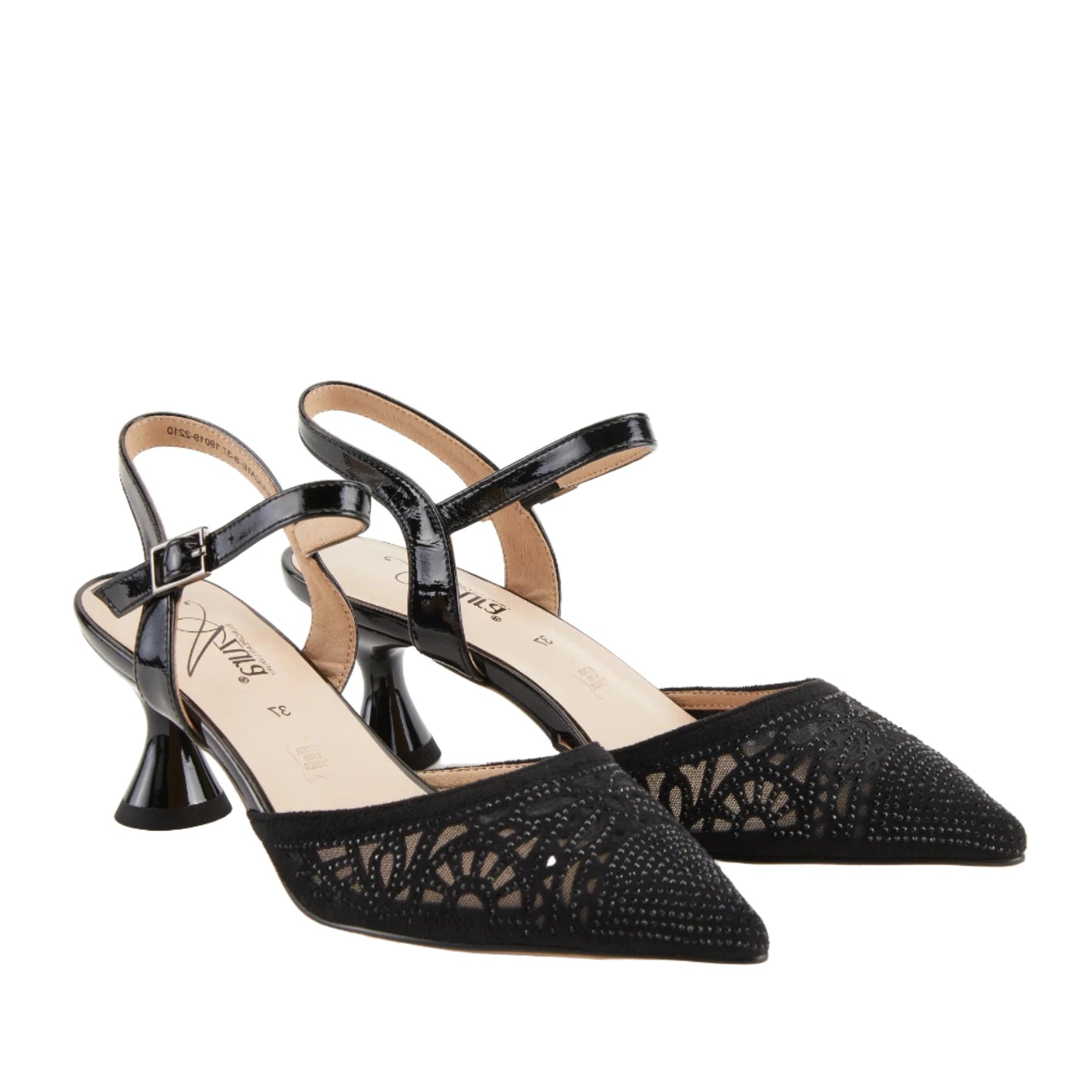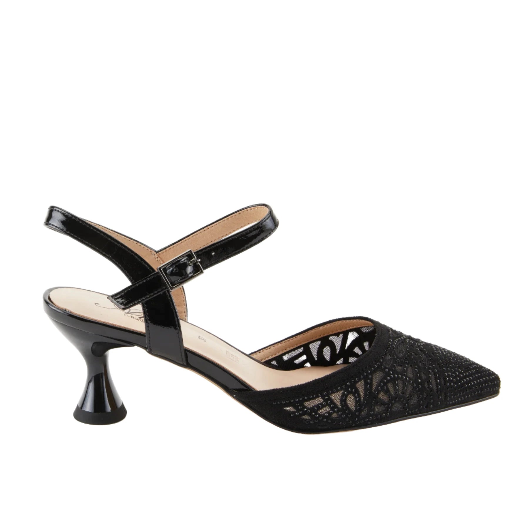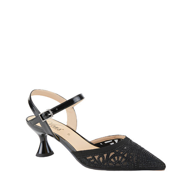 Stand out in the crowd when you slip into Spring Step's new delicate heel. This eye catching hourglass heel as well as the rhinestoned pointed closed toed upper gives a romantic and flirty feel. Now available at Alamo Shoes in Chicago.