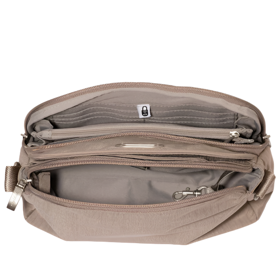 With a sleek flip lock closure and a built-in front RFID-wallet, this crossbody bag is all about functional style. A privacy pocket and built-in key leash helps keep smaller items secure. Plus, it’s easy to clean — and even easier to wear thanks to the lightweight design. Now available at Alamo Shoes!