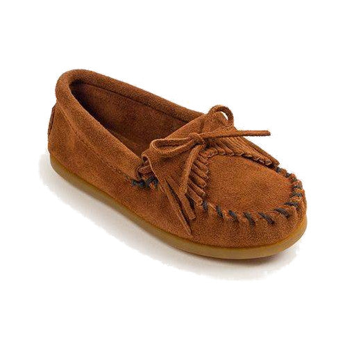 A simple, classic moccasin style with superior comfort thanks to soft, easy wearing materials and a touch of fringe to add style. Have them slip on these supple suede leather shoes with ultra-flexible bottoms and they can play all day!