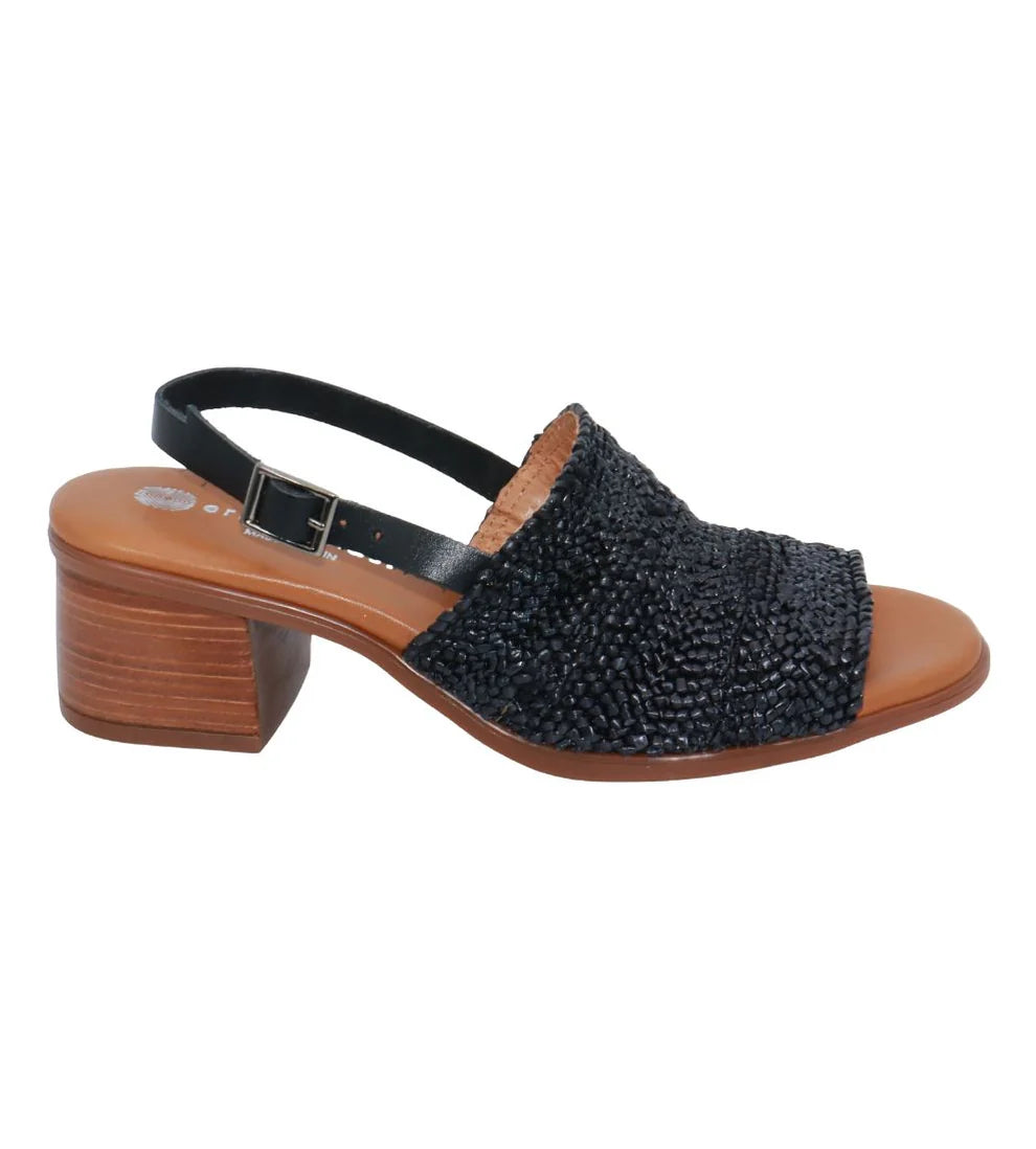 he Eric Michael Rafa is an elegant European-crafted slingback designed for comfort and style. Its genuine leather and stretchy raffia upper provide a flexible, supportive fit, while the soft leather cushioned insole ensures all-day wear. The block heel and forefoot grooves offer stability and grip, making Rafa perfect for both dressy and everyday occasions.